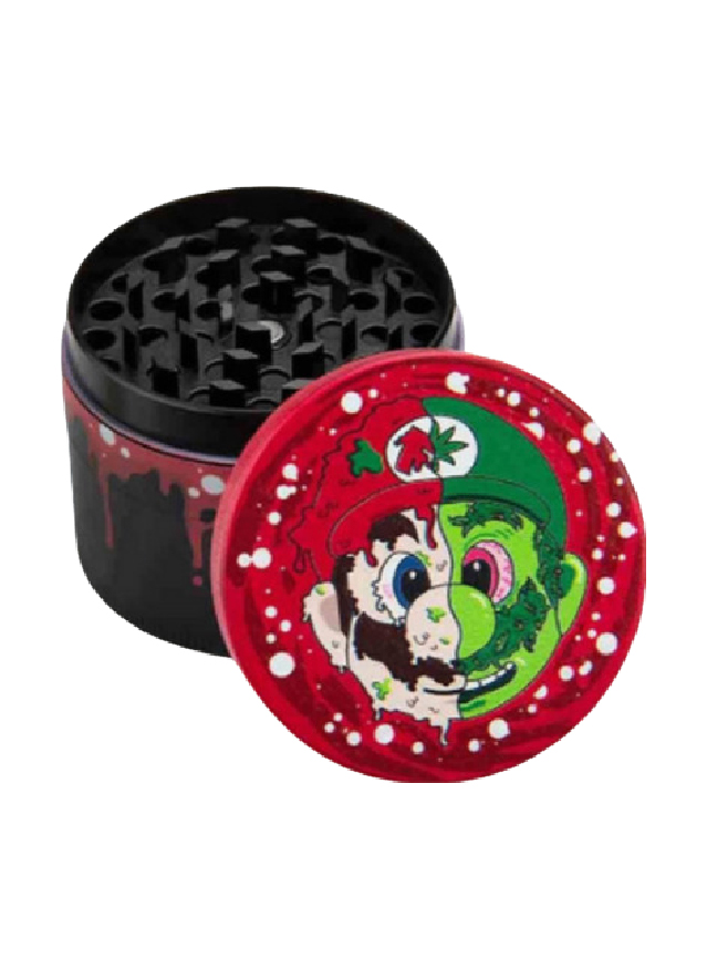 Grinder de metal do Super Mario Bros Zumbi. Possui fecho magnético e é dividido em 4 partes com uma rede para separar os póllens e um reservatório. Diâmetro: 40mm Altura: 35mm