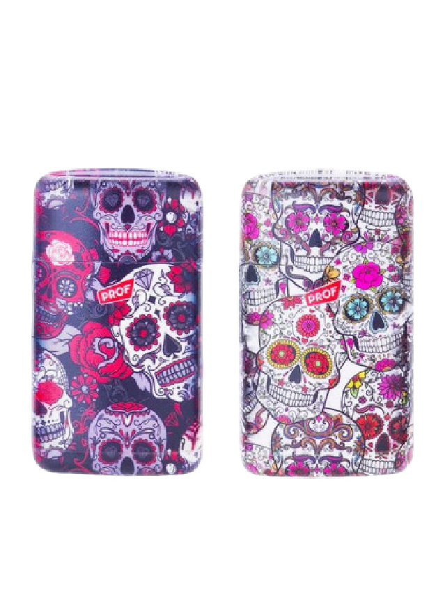Isqueiro anti-vento recarregável com desing de caveira camuflada. Este isqueiro possui chama azul, o que proporciona uma combustão completa.