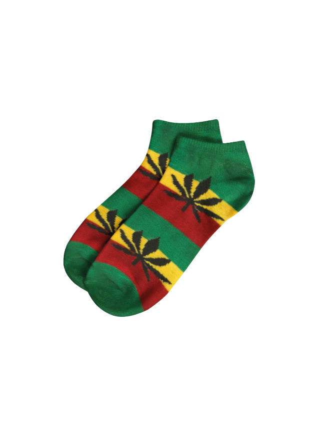 Meia de cannabis curta inpirada na cultura rasta. Vendido ao par. Tamanho 40-45
