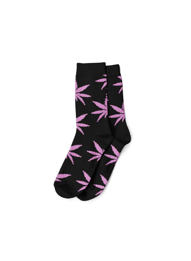 Meia de cannabis longa na cor preta com folhas rosas. Vendido ao par. Tamanho 36-42