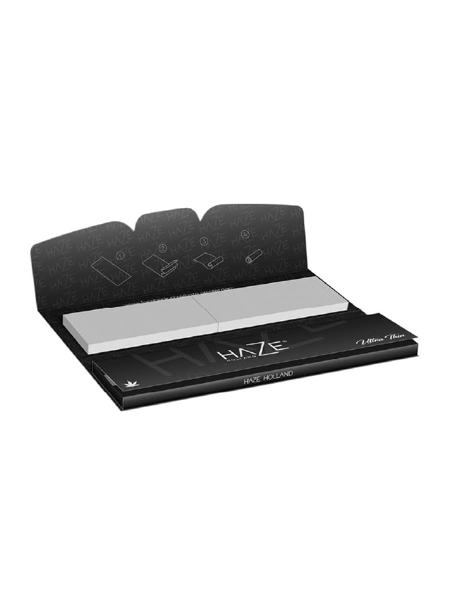 Mortalhas King Size Slim da Haze Holland. Papel não branqueado e de queima lenta. Cada embalagem contem 32 mortalhas e 32 filtros de cartão.