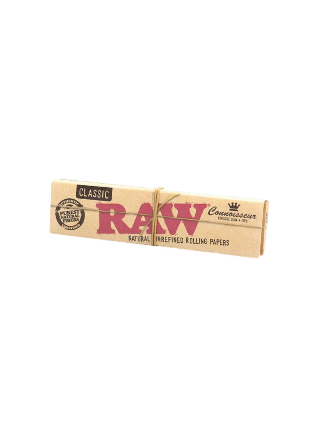 Mortalhas King Size Slim da Raw. Papel não branqueado e de queima lenta. Cada embalagem contem 32 mortallhas e 40 filtros de cartão.