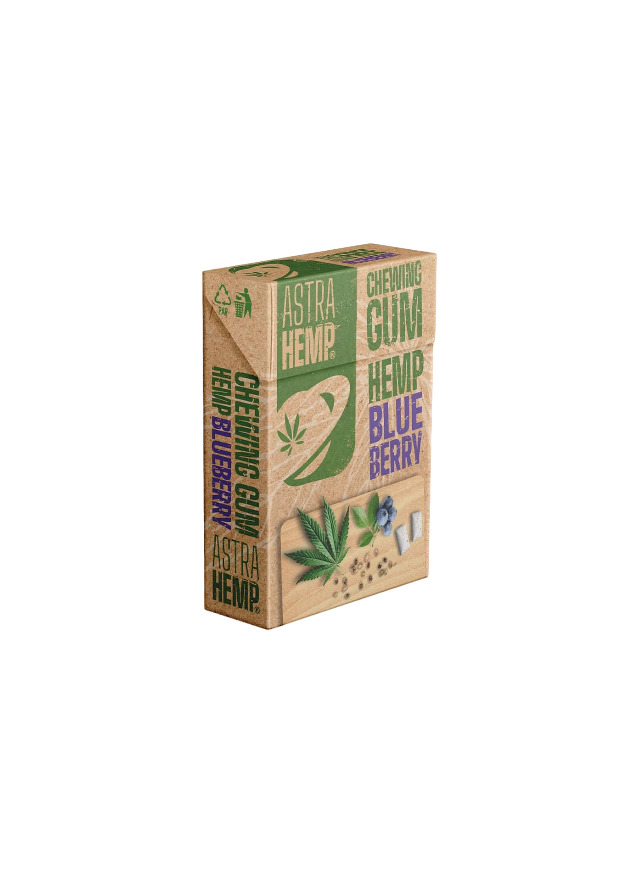 Pastilha elástica de Blueberry com Cannabis e sem açúcar. Cada embalagem contém 24g.